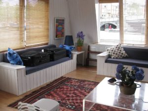 Well, we made it to Amsterdam. I thought I’d share the view from my temporary “office” on the garden terrace of our rented houseboat. What a perfect place to write!